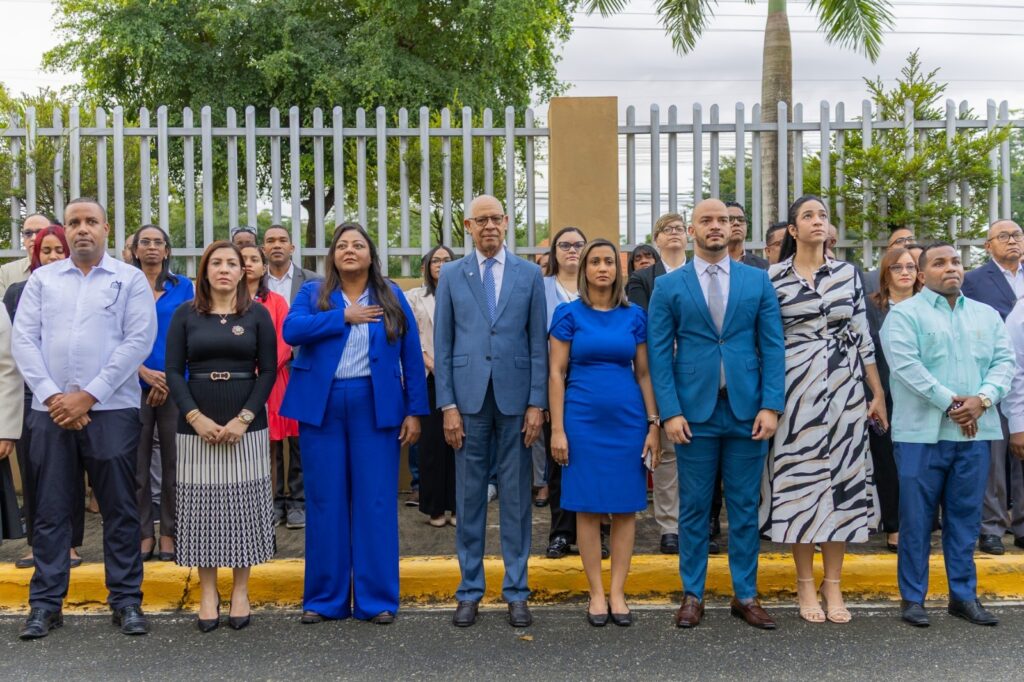 Como acto de inicio de la vistosa ceremonia, se realizó el izamiento de la bandera nacional, en la explanada frontal de la alta casa de estudios, localizada en el distrito municipal de San Luis, Santo Domingo Este.